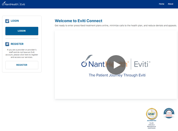 To register for Eviti Connect for Oncology, you need your facility's federal tax identifier (TIN) and business name, and the provider's individual NPI number. If you're part of a practice, you need the NPIs for all the providers in your practice. NPIs must belong to a medical oncologist or a radiation oncologist.